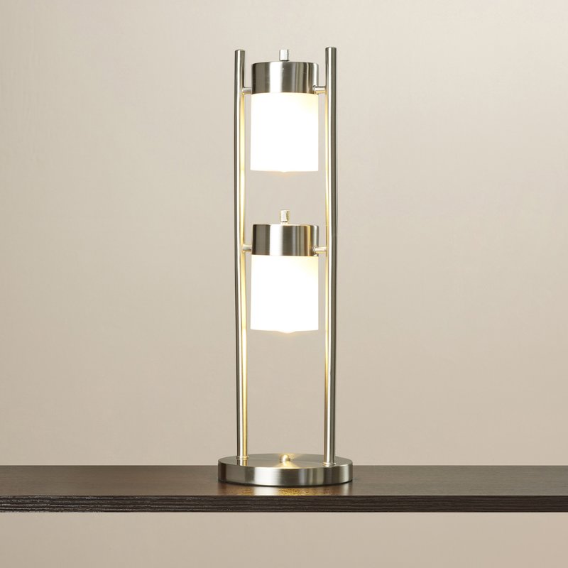 A distinctive open design gives this 2-shade table lamp eye-catching appeal while its silver-hued finish adds a shimmering touch to any space. Use it... more info